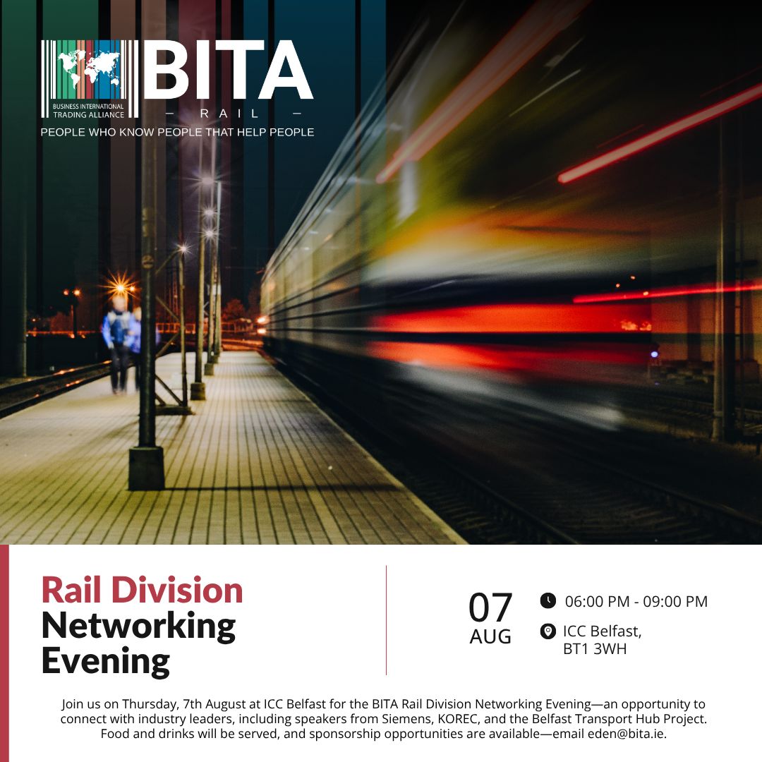Join BITA on Thursday, 7 August at ICC Belfast for an evening of connections, conversations, and collaboration at the BITA Rail Division Networking Evening. Line-up of guest speakers, includes: 🚆 Alex Stewart, Strategic Head at Siemens 🚉 Louise Sterritt, Senior Programme Manager – Belfast Transport Hub Project 🛰️ Industry experts from KOREC Group This is […]